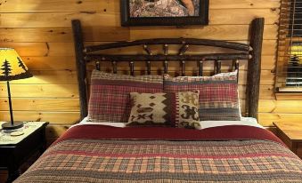 Downstairs Bear’s Lair: King-size bed, wrap-around sofa, stereo television, an additional queen bedroom, full bath with jacuzzi jet bathtub, washer and dryer, and a walk-out basement leading to double hammocks.