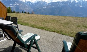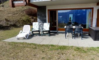Modern, beautiful, cosy residence "Fénestral", built in 2003. In the district of Centre Thermal 1 km from the centre of Ovronnaz, in a quiet, sunny position, 1.8 km from the skiing area, in a cul-de-sac, south facing position. In the house: lift, storage room for skis, central heating system, washing machine (extra), tumble dryer (extra), drying room. Towel change weekly (suppl. charge extra). Motor access to the house. Communal covered parking. Grocery 1 km, restaurant 50 m, bar 50 m, bakery 1 km, café 1 km, bus stop "Chapelle" 600 m, thermal baths 50 m. Golf course (18 hole) 25 km, tennis 500 m, ski rental 1 km, ski bus stop 200 m, ski school 1 km, cross country ski track 2.2 km. Free ski bus service to the ski region d'Ovronnaz. "Fénestral R01", 3-room apartment 70 m2, on the ground floor. Living/dining room with 1 double sofabed, dining table, cable TV and DVD. Exit to the terrace, south-west facing position. 2 rooms, each room with 2 beds (90 cm, length 200 cm). (dishwasher, 4 ceramic glass hob hotplates, microwave, electric coffee machine, Capsules for coffee machine (Nespresso) extra, fondue Set (cheese)). Bath/WC, shower/WC. Terrace. Terrace furniture. Beautiful view of the mountains. Facilities: Internet (WiFi, free). Garage space n R0 1. Suitable for families.