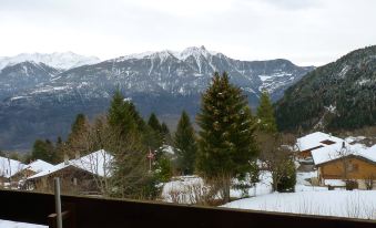 Apartment house "Centaure B", 3 storeys. In the district of Pont de Pierre 1.2 km from the centre of d'Ovronnaz, in a quiet, sunny position, 1.9 km from the skiing area, in a cul-de-sac, south-east facing position. In the house: central heating system, washing machine, tumble dryer (for shared use, extra), drying room. Motor access to the house (ramp). Grocery 1.3 km, restaurant, bar 450 m, bakery 1.3 km, café 450 m, bus stop "Postal Ovronnaz, Pont de Pierre" 350 m, railway station "Riddes" 10 km, thermal baths 450 m. Chair lift 1.9 km, ski rental 1.3 km, ski school 1.3 km, cross country ski track 2.5 km, children's playground 850 m. Please note: ski bus (free of charge). Free ski bus service to the ski region d'Ovronnaz (l'hiver uniquement). Please note: motorway 10.3 km from the property. Railway line 11.1 km from the property. Additional accommodations can be booked. "Centaure B RI 1", 3-room apartment 80 m2, on the ground floor, south facing position. Spacious, practical and comfortable furnishings: entrance hall. Large living/dining room with 1 double sofabed (2 x 80 cm, length 160 cm), flat screen. Exit to the terrace, south facing position. 1 room with 1 double bed (2 x 80 cm, length 200 cm). Exit to the terrace, south facing position. 1 room with 1 double bed (2 x 80 cm, length 200 cm). Small, open kitchen (4 hot plates, toaster, kettle, electric coffee machine, Capsules for coffee machine (Nespresso) extra, raclette grill, fondue Set (cheese)). Bath/WC, sep. WC. Large terrace 35 m2, south facing position. Terrace furniture. View of the mountains. Facilities: washing machine (extra). Dryer (extra), iron, baby cot, hair dryer. Garage space n RI 1 (1 car), height 185 cm, width 360 cm. Please note: suitable for families. Non-smokers only.