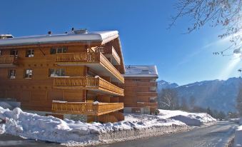 Very modern, beautiful, cosy residence "Les Rhodos". In the centre of d'Ovronnaz, in a sunny position, 1.2 km from the skiing area, south-west facing position. In the complex: lift, storage room for skis, central heating system, washing machine, tumble dryer (for shared use, extra), drying room. Motor access to the house. Communal covered parking. Grocery 700 m, restaurant, bar 400 m, bakery 700 m, café 400 m, bus stop "Ovronnaz, chapelle" 130 m, railway station "Riddes" 16.4 km, thermal baths "Les Bains d'Ovronnaz" 350 m. Slopes 1.2 km, ski rental 550 m, ski bus stop 50 m, ski school 550 m, cross country ski track 1.8 km. Please note: suitable for families. Ski bus (free of charge). "Rhodos B 301", 3-room apartment 80 m2, on the top floor, south-west facing position. Spacious and bright, comfortable and tasteful furnishings: entrance hall with hand-basin, shower/WC and TV. 1 large room with 1 double bed (2 x 90 cm, length 200 cm), bath/WC. Exit to the balcony. 1 room with 2 beds (80 cm, length 200 cm). Gallery. Open kitchen (oven, dishwasher, 4 induction hot plates, toaster, kettle, microwave, freezer, electric coffee machine, Capsules for coffee machine (Nespresso) extra, raclette grill, fondue Set (chinoise, cheese)) with dining table. Large balcony. Balcony furniture, deck chairs. Very beautiful panoramic view of the mountains. Facilities: Internet (WiFi, free). Garage space n B 301 (1 car). Please note: suitable for families. Non-smokers only.
