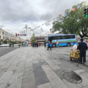 Отель удобно расположен, с несколькими входами и выходами. Ближайший выезд в живописную зону находится прямо у контрольно-пропускного пункта у входа в храм Джоканг. У отеля есть небольшая парковка, так что обычно можно заехать на машине (хотя, думаю, стоит спросить заранее). Номера просторные и чистые, а завтрак довольно хороший. К тому же, внизу полно ресторанов, в основном сычуаньской, тибетской и юньнаньской кухни, так что вам не о чем беспокоиться. Общественный транспорт также очень удобен: автобусы ходят примерно в 700 метрах в большинстве направлений. Единственный нюанс: вестибюль отеля не выходит на улицу! Я приехал на поезде или автобусе и не смог найти отель внизу, поэтому мне пришлось позвонить и спросить. Позже я узнал, что до отеля можно добраться со всех сторон.