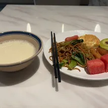 • Breakfast: The whole pears (pears) were not cleaned thoroughly. While the sticky pectin on the skin is understandable, the black spots at the root were unaddressed, affecting the eating experience. Better pre-treatment of ingredients is needed.