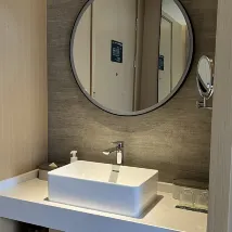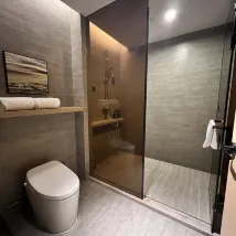 • Room cleanliness: There were minor oversights—visible limescale on the shower head and urine stains left on the toilet—indicating incomplete adherence to cleaning standards, especially for hard-to-reach areas.