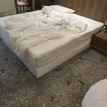 Ответ от объекта размещения: 尊敬的客人:非常感謝您選擇我們民宿並給予反饋,首先您訂的這個房型並沒有標註是堅果投影,其次是我們房間的提示卡放的不夠顯眼,沒能讓您及時看到訊息,這是我們的疏忽。關於地面有裂紋的問題,我們已安排專業人員對地面情況進行評估,並制定了修繕計劃,後續也會定期檢查,確保類似情況不再出現,另外,關於夜粥服務,我們民宿目前確實沒有提供這項服務.再次為給您造成的困擾道歉,希望後續能為您提供更滿意的服務。