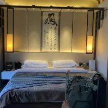 - Room: Renovated but still looked tired. Playing with the Chinese AI gadget was fun, but you need to speak Chinese to turn the lights on/off and draw curtains. My room was so small it did not have any place to hang clothes. When I asked for a coat rack, the housekeeping staff brought a bunch of coat hangers - when I asked where I was supposed to hang those, she sheepishly said there was no room.