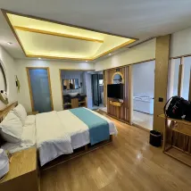 Очень приятное пребывание! Хозяева были очень гостеприимны и отзывчивы :) Особенно благодарен Тирамису и доброму господину, который помог мне с моим огромным багажом. Расположение отеля очень удобное, в самом древнем городе, и я был удивлён, что по ночам здесь относительно тихо. Мне бесплатно повысили категорию номера, и хозяева любезно разрешили мне сменить его, так как первый номер был рядом с улицей и за пределами коридора, а я предпочитаю более уединённый номер (мой номер был 210). Завтрак также был включён. Два момента, которые стоит отметить при проживании в древнем городе, – это каменистые тропы и отсутствие лифтов. Поэтому мне пришлось нанять кого-то у входа через Северные ворота, чтобы доставить мой багаж в Сунчжуджу (заплатили около 12-15 юаней за поездку). Хозяин также очень помог мне поднять мой огромный багаж по лестнице, так что мне не пришлось этим заниматься. Превосходное обслуживание, очень благодарен за помощь. Рекомендую Сунчжуджу всем, кто собирается остановиться в древнем городе.