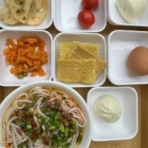 Завтрак в лобби отеля либо внутреннем дворе в окружении цветов. Его приносят в индивидуальных сбалансированных наборах, где есть все для начала активного дня: каша, суп, маринованные и свежие овощи. Блюда ароматные, не жирные и не острые, подойдут всем возрастам.