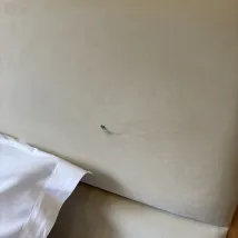 На покрывале кровати волосы, простыни грязные, обстановка плохая, все не соответствует фотографиям в интернете, отношение персонала плохое, они что-то вытащили и сказали, что не видели этого.