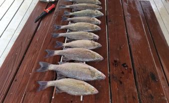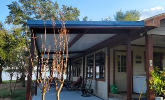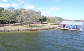 The location is very convenient centrally located within 2-1/2 hours from Houston, Dallas, and Austin. The Peninsula is located between two quiet coves. The Lake is recognized as a top fishing lake in Texas for several species. It holds many fishing tournaments every year. You will spend most of you time outside rather it is under the large covered patio or on the covered pier fishing. The fishing from The Peninsula is great for Black Bass, White Bass, Sand Bass, HI Fin Blue Cat, Flat Head Cat, Channel Cat, Crappie, and Brim. You will also catch many other species as well. Of course, you will enjoy gathering around the private firepit in the evenings. With almost 10 acres there is plenty of land to explore. It is a natural environment so expect to see animals. That includes deer, squirrels, hogs, racoons, armadillos, etc. You are never far from the water. We normally swim just south of the private boat ramp by the short bulkhead. Between the boat ramp and the covered pier.