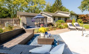 Introducing "Drift Away Den," a haven of tranquility in a quiet neighborhood close to the wine trail. This 4-bedroom retreat accommodates 10 guests, offering a spacious, fenced backyard with a heated inground pool, play set, fire pit, and gas grill. The main floor invites relaxation with a living room, dining room, half bath for easy pool access and well-appointed kitchen, providing a perfect blend of serenity and space.