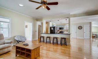 The house has enough areas where people can spread out. We had a total of 9 people and it worked perfectly for us! Right on the lake with a dock- next time we will bring kayaks. We rented a boat about 20 miles away.