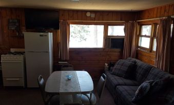 Cabin #1 shares a wall with another cabin. There is an interior door with locks on each side connecting the two cabins. Each cabin has its own outside entrance, kitchen bath and bedroom. There is no shared space between the two.About pets:Pets allowed.We allow well behaved pets with a $30/per pet fee.About checkOut:Check out before 11:00 AM.About children:Children allowed: ages 0-17.About checkIn:Check in after 3:00 PM.About smoking:Smoking is not permitted.About minBookingAge:Minimum age to rent: 21.About events:No events allowed.