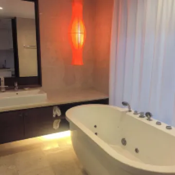 Минус: в уличный бассейн при апартаментах нужна шапочка! Без неё плавать не пускают, предлагают купить за 15 юаней. Если у вас борода, то шапочка на неё не нужна. Логики нет.