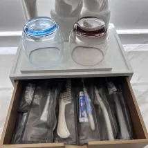 3. Коробка для салфеток у раковины, аккуратные и продуманные туалетные принадлежности, аварийный фонарик в углу и мелкие детали повсюду очень продуманы. Я случайно обнаружил, что даже чистящие инструменты уборщиков очень чистые.