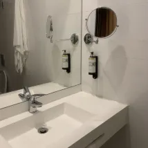 Расположение не близко к основной туристической зоне, а инфраструктура средняя и довольно тихая. К счастью, такси легко добраться, и есть метро. Ванная комната казалась чистой, но вентиляция была плохой. Ванная комната была почти пустой, а ковёр пах затхлостью и сыростью. Из туалетных принадлежностей были только гель для душа и мыло для рук.