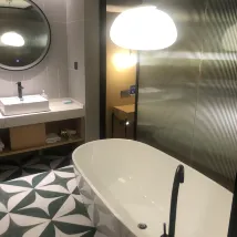 I really enjoyed this comfortable stay. Bath water was nice and hot too 👍 Some suggestions: 1. mug in the room would be nice seeing as their is a kettle. I made coffee. 2. Dust the light above bath. I bumped my head on this light. Maybe needs to be lifted a bit higher.