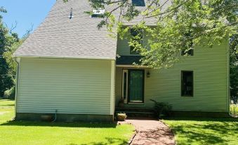 This was a beautiful, well equipped house. 2 separate eating areas (one indoor and one outdoor) provided plenty of space for our group of nine to have family dinners. The yard is spacious with plenty of room for games, a fire pit and yard chairs provided. Owners were lovely and made themselves available but not intrusive. Pond was terrific for kayaking.