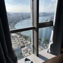 風景非常好 望山望水 看日落看夜景很幸福!!超級好評!! 交通很方便,樓下有商場,著名的盧姐炒冰也在樓下,不用大排隊。 旁邊有個很大很大的建築,要洗頭髮按摩裏面幾十家店可以選擇,很贊!