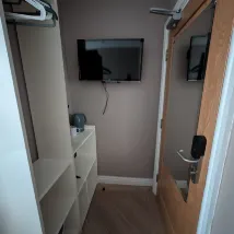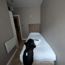 Шум за окном совершенно не мешает. Музыка и пение в пабе не умолкают. Из еды и напитков предлагаются только полотенца и туалетная бумага, а раковина едва хватает, чтобы помыть руки. Расположение рядом с вокзалом и остановкой автобуса в аэропорт. Персонал дружелюбный и отзывчивый.