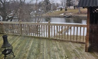 Nestled in Fenton, this delightful two- bedroom home offers guests an escape from their day to day lives. With multi-direction views of Bennett Lake, guests are able to unwind while lounging on the deck enjoying views of the channel to Lobdell Lake or relax on the upper deck in the eight person jacuzzi with views of all sports Bennett Lake. After a fun day at the lake, guests can enjoy their evening at the home, or walk next door to one of the best tiki/dance bars in the area.