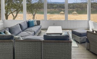 Step outside and you'll find yourself on a large sandy beach, where you can spend hours soaking up the sun or swimming in the crystal clear waters of Lake LBJ. The beach is perfect for families with children or for those looking for a peaceful retreat by the water. Your furry friends are also welcome to join in on the fun, as this rental is pet-friendly. Children & dogs enjoy the huge sandy beach and shallow water! For swimming & boating, the deeper water is a little further out so it is a perfect place for children sitting and playing in the water.
