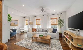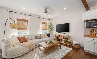 The open-concept layout invites natural light and easy flow, making it ideal for both unwinding and connecting.