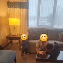 Our suite was perfect for my family of 6. There was a separate living space with a pull out bed and the bedroom had two queens with french doors for privacy. The kids enjoyed the pool and mini arcade. Wish there was breakfast included..or even coffee for guests.