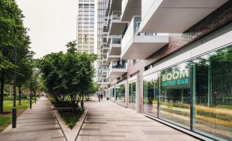 Welcome to Goodman's Fields! A premier £1B regeneration project built on 7 acres of land in Aldgate built/designed by Berkeley/Lifschutz Davidson Sandilands respectively. This development represents a new modern urban quarter in the City with a cluster of 6 slender glass beacons (surfaced w/ delicate filigree of aluminium fins that articulate the framing of glazed balconies) that rise proudly into the sky above the beautiful botanical gardens complementing the make-up of the sculpted equine beasts in the Main Plaza.