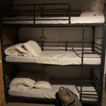 Я знаю, что это молодежный хостел, поэтому у меня нет больших ожиданий, я тоже раньше видела плохие отзывы, но кровать здесь трехъярусная и ее действительно невозможно застелить (обычно двухъярусную) и кровать. очень узкий, всего 80 см, так что не развернешься! И здесь нет занавесок, нет уединения, а шкафчики сломаны.