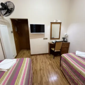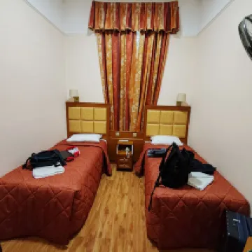 Отель расположен очень удачно. Мы приехали почти в час ночи и нам дали номер в полуподвальном помещении. Комната была просторная, но постельное белье и шторы были с очень пестрым рисунком, что сразу создало впечатление нечистоты. Подушка действительно пахла потом. Ванная комната была недавно отремонтирована, полностью оборудована, но довольно тесная. Судя по обстановке номера, предположу, что владельцы — индийцы!