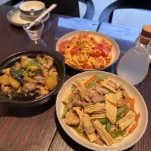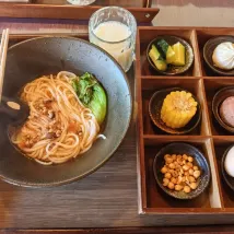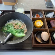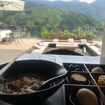 [Ресторан Sky Terrace]: Завтрак подавали до 22:30, и мы сидели на открытом воздухе. В августе было очень прохладно, поэтому было очень комфортно. Курица, запечённая в бамбуке, и речная рыба на обед тоже были восхитительны. Лук-порей был очень свежим; я видел, что шеф-повар собрал его в горах.
