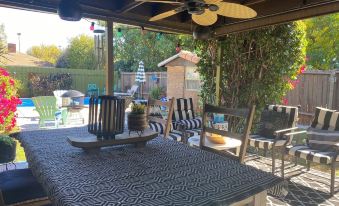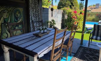 My husband, daughter, and our dogs needed a place to stay during graduation weekend -- and this fabulous house was the perfect place. It was a cute and welcoming location to rest, celebrate, and enjoy our time in the LA area. The beds were super comfortable, the outdoor area so inviting, and it was a bonus to have a pool! The check in was super easy and the owner was a breeze to deal with!