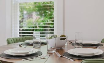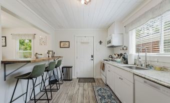 A fully equipped kitchen, coffee maker and Keurig, blender, toaster, a dining table to enjoy your meals. A bar seating area is also available.