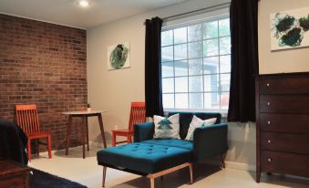 Be our guest! Newly renovated one bedroom attached guest house, conveniently located in Valdosta, GA just off I-75. View of pool, surrounded by lush greenery, making you feel like you are in your own private jungle get away.This guest house features a unique exposed brick wall, original art work, and mid-century modern decor. We can comfortably fit 2 adults , 2 children, and a baby. We have a queen bed, a love seat that converts to bed, and a portable twin mattress, and Pack n Play will be provided when requested. The kitchen has basic needs to prepare simple meals for a couple, or small family. If there is anything missing from the kitchen or bathroom that you need, please just ask. Our guesthouse is attached to our home, but is still a completely separate dwelling. It has plenty of privacy available including a private entrance. The pool has a separate fenced in area, and a private patio is provided for our guests.About pets:No pets allowed.About checkOut:Check out before 11:00 AM.About children:Children allowed: ages 0-17.About customRules:All feminine hygiene products must be thrown in the trash only. Please never flush them down the toilet..About checkIn:Check in after 3:00 PM.About smoking:Smoking is not permitted.About minBookingAge:Minimum age to rent: 25.About events:No events allowed.