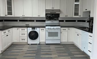 The 2023 completed constructed new unit has 2 bedrooms with balcony and a spacious kitchen, bathrooms, Living / dining room with enormous bay window (take a nap after lunches). Hardwood and tile floors, wood cabinets, granite countertop, dishwasher, refrigerator, Washer /dryer Combo and air conditioning are all included in the unit. Independent entry and Off-street parking or bike. EV charging is possible. The unit is fully furnished with new beds, memory mattress and other furnitures, desks , dining table sets, smart TV, fast internet etc.