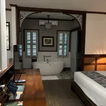 Фантастически красивый отель! Мы остановились в комнате с выходом к бассейну, из которой есть прямой выход во внутренний двор главного бассейна. Потрясающее место с вкусной едой и потрясающим обслуживанием! Комната была очень чистой и красиво оформленной. Мы обязательно остановимся снова.