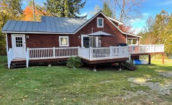 This house is perfect for a family vacation. We love all the small villages in the area and the scenery is spectacular. My daughter enjoyed kayaking on the lake and the loons were so nice to listen to morning and evening. We only have two suggestions: the stairs need handrails on both sets, up to bedrooms or down to the family room area and bedrooms downstairs.Also, we were unable to connect the dvd player in the main level living area.Otherwise, the home was comfortable and very well appointed. Our hosts provided everything we needed.
