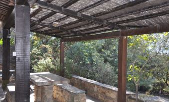 Then we have the outdoor area where there are two areas, front and back with chairs and tables. It also has a barbecue for our clients :-)