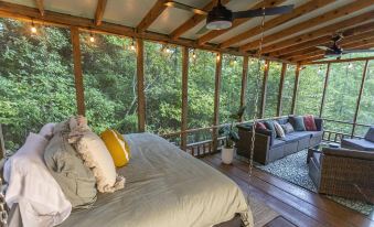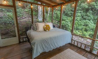 You will love the charm of our cozy and secluded Walden Creek Cabin; its perfect for family vacations as well as romantic getaways. Enjoy a drink on the expansive deck by the fire table, string up a hammock in the “Hammock Village” (bring your favorite hammock) or enjoy a siesta on the hanging bed in the screened-in porch! All while soaking in the views of the North Georgia mountains.