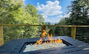 Our Master bedroom has a queen-sized bed and Roku TV. The two upstairs “open-loft” bedrooms feature a queen bed in each room with gorgeous views of an enchanting forest. The downstairs bathroom is complete with a walk-in shower while the upstairs has a separate shower room from the bathroom. That way someone could be getting ready while someone else is in the shower.