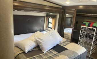 Your home away from home in Dahlonega with 1 bedroom. This high end 5th wheel camper is an enchanting retreat for guests. The cozy bedroom features a comfortable king bed and dedicated AC, ensuring a terrific night's sleep. The bathroom is equipped with a shower and a hair dryer for your convenience. In the additional living room space, you'll find a pullout sofa, perfect for lounging or accommodating extra guests. With amenities like ice maker, tank less water heater, AC, heating, a washing machine, and a hair dryer, your stay will be comfortable and hassle-free. We think our place will help you experience everything Dahlonega has to offer.About pets:No pets allowed.About checkOut:Check out before 12:00 PM.About children:Children allowed: ages 0-17.About checkIn:Check in after 3:00 PM.About smoking:Smoking is not permitted.About minBookingAge:Minimum age to rent: 25.About events:No events allowed.