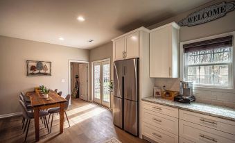 We stayed the weekend at Cozy Cottage. It is in pristine condition and had all of the amenities. I especially enjoyed the coffee bar with an assortment of Keurig cups. The kitchen was well stocked with items usually used in cooking: salt, pepper, cooking spray, and aluminum foil. Bed was comfortable and bedrooms were spacious. We highly recommend this rental and it’s super close to town.