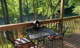This adorable riverside home on the Chestatee is just minutes from historic downtown Dahlonega, wineries and wedding venues. Only 7 miles from GA 400, the location is central to everything you would want to do and see. Enjoy the scenery and wildlife from the large covered deck, rain or shine. You can hear the peaceful sound of nearby rapids from the deck. Songbirds, as well as duck, blue herons, deer and the elusive river otter make an appearance from time to time. No Smoking Indoors, NO Pets & NO Parties or Events.About pets:No pets allowed.About checkOut:Check out before 11:00 AM.About children:Children allowed: ages 0-17.About checkIn:Check in after 3:00 PM.About smoking:Smoking is not permitted.About minBookingAge:Minimum age to rent: 21.About events:No events allowed.
