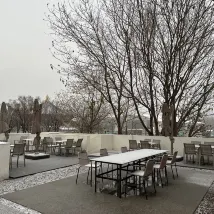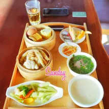 Завтрак едят во временном кафе по соседству, в которое можно попасть напрямую через дверь. Приготовленный комплексный обед красив, хорошо сочетается и имеет приятный вкус. Я очень сыт.