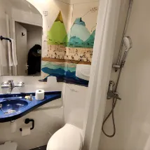 Ванная действительно очень маленькая и шум с улицы и труб по ночам, необходимо пересмотреть изоляцию окон. В остальном чистый и удобный. Хозяин также очень хорошо расположен.