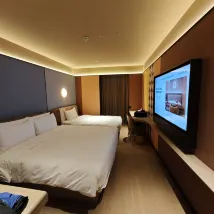 Обслуживание в отеле действительно хорошее. Учитывая, что мы приехали с детьми, нам повысили категорию номера до родительско-детского. В День независимости мы также подарили небольшой красный флаг 🚩 и небольшой подарок. Мы всегда реагировали на ваши просьбы. Номер также очень чистый, оборудован умным Xiaodu, уборка также производится очень своевременно.