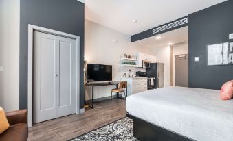 Styled with music in mind, this unit blends Widespread Panic's iconic energy with a Home Team flair, creating a bright, relaxed, and fun stay in downtown Macon. Book your stay today.