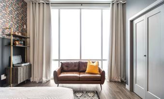 This Widespread Panic-themed stay brings a playful, music-loving energy to downtown Macon. Featuring bold mushroom wallpaper, floor-to-ceiling windows, and a king bed, it’s perfect for fans, travelers, and anyone looking for a fun and stylish escape near Mercer.