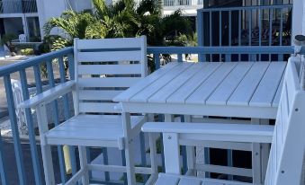 -In large grey seat/storage bin on balcony you'll find beach necessities, beach wagon, beach chairs, beach umbrella/sand screw, cooler, sand toys, beach football and basketball if requested to use at ROC park.