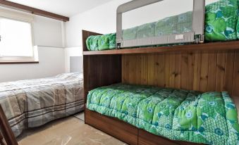 Comfortable apartment house "Torre", 1'550 m a.s.l., 4 storeys. In the centre of Madesimo, in the residential district, excellent location: right in the centre but still quiet, 250 m from the skiing area. For shared use: large garden with lawn and plants. In the house: lift, storage room for skis, central heating system. Pre-arrival grocery service. In Winter: please take snow chains. Public parking on the road extra. Supermarket 350 m, restaurant 200 m, bar 150 m, café, bus stop 200 m. Chair lift, ski school, children's ski school 250 m. Well-known lakes can easily be reached: Lago di Como 44 km. Hiking paths: Andossi - Giardino Alpino Valcava, Lago d'Emet - Pizzo Spadolazzo, Sentiero del Cardinello, Val Febbraro. Please note: In case of good snow conditions, the house is accessible on skis. Additional accommodations can be booked. "MadeSki Apartment", 2-room apartment 60 m2 on 1st floor. Practical and comfortable furnishings: living/dining room with dining table and TV. 1 room with 1 x 2 bunk beds, 1 double bed. Kitchenette (oven, dishwasher, 4 induction hot plates, toaster, kettle, microwave, electric coffee machine, Capsules for coffee machine (Uno System) free). Shower/bidet/WC. Heating, boiler (80 litres). Partial view of the mountains. Facilities: children's high chair, baby cot, hair dryer. Internet (WiFi, free). Garage. Please note: non-smoking house. Maximum 1 pet/ dog allowed. IT014035C2VLE7A6EU